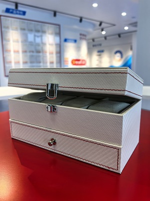 Современное углеродное волокно и эстетичная строчка: Белая серия для хранения отличается гладкой текстурой из углеродного волокна. В сочетании с нашей способностью производить кожу, совместимую с высококонтрастной красной строчкой, эти материалы соответствуют современной, спортивной и роскошной эстетике, востребованной в секторах упаковки часов и ювелирных изделий.